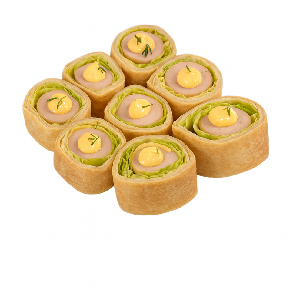 Молоко, мука, сахар, соль, яйцо куриное, масло сливочное, сосиска, сыр плавленный, лист салата