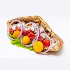 Лепешка, капуста пекинская, помидор, огурцы , нерка х/к, соус чесночный, сыр сливочный, лук красный репчатый, зелень, лист салата, картофельные шарики