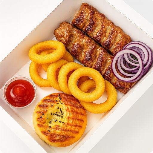 Филе курное с бедра, говядина, курдюк, лук репчатый, паприка, соль, перец черный., лепешка. Гарнир на выбор