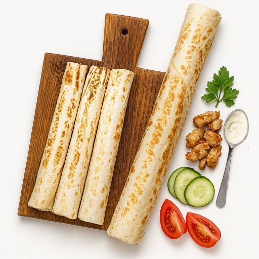 Лаваш, капуста пекинская, филе куриное с бедра, помидор, огурец, соус чесночный, зелень